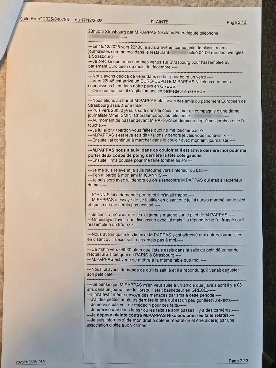 Το πρωί της Τετάρτης 17 Δεκεμβρίου 2025, ο Νίκος Γιαννόπουλος κατέθεσε μήνυση στην Αστυνομική Διοίκηση Αλσατίας στο Στρασβούργο, περιγράφοντας αναλυτικά το περιστατικό.