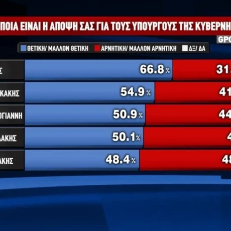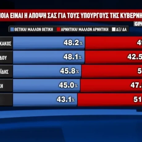 Στην πρώτη δεκάδα των δημοφιλέστερων υπουργών της κυβέρνησης προηγείται ο Νίκος Δένδιας και ακολουθούν: