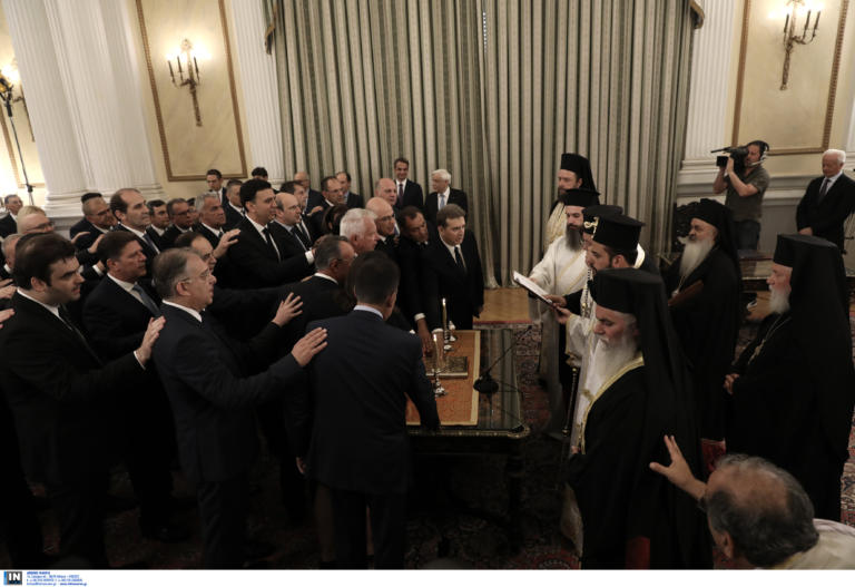 Στην κυβέρνηση Μητσοτάκη, πάλι, κανείς δεν θέλησε να δώσει τον πολιτικό όρκο και ορκίστηκαν όλοι με θρησκευτικό.