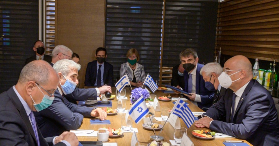 Διευρυμένες συνομιλίες των αντιπροσωπειών Ελλάδας και Ισραήλ υπό τους υπουργούς Εξωτερικών, Νίκο Δένδια και Γιαΐρ Λαπίντ, πραγματοποιήθηκαν νωρίτερα σήμερα, κατά τη διάρκεια της επίσκεψης του Έλληνα υπουργού Εξωτερικών στο Ισραήλ για τις παράνομες τουρκικές ενέργειες.