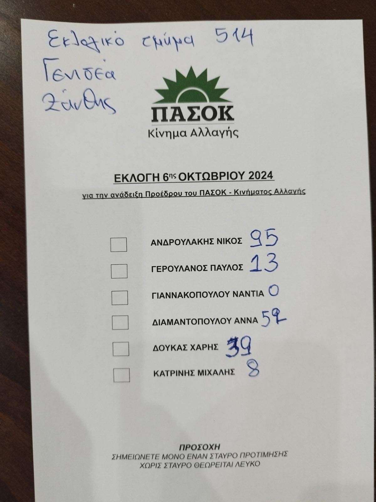 Νίκος Ανδρουλάκης 97 ψήφους