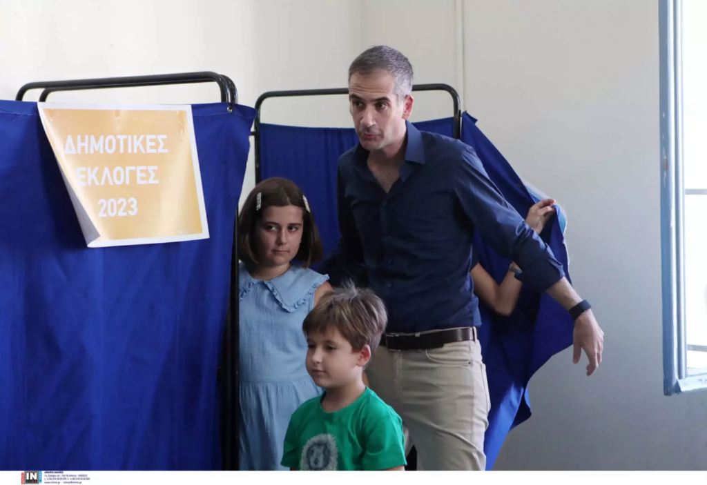 Μάλιστα, ο υποψήφιος δήμαρχος με το συνδυασμό «Αθήνα Ψηλά», μπήκε στο παραβάν μαζί με τα παιδιά του.