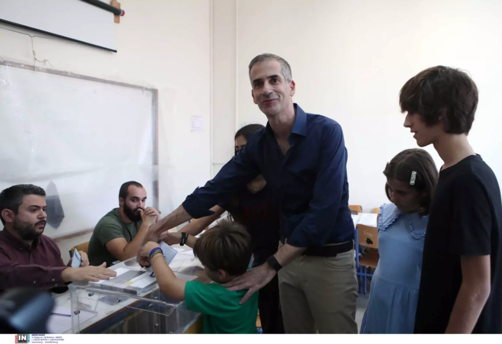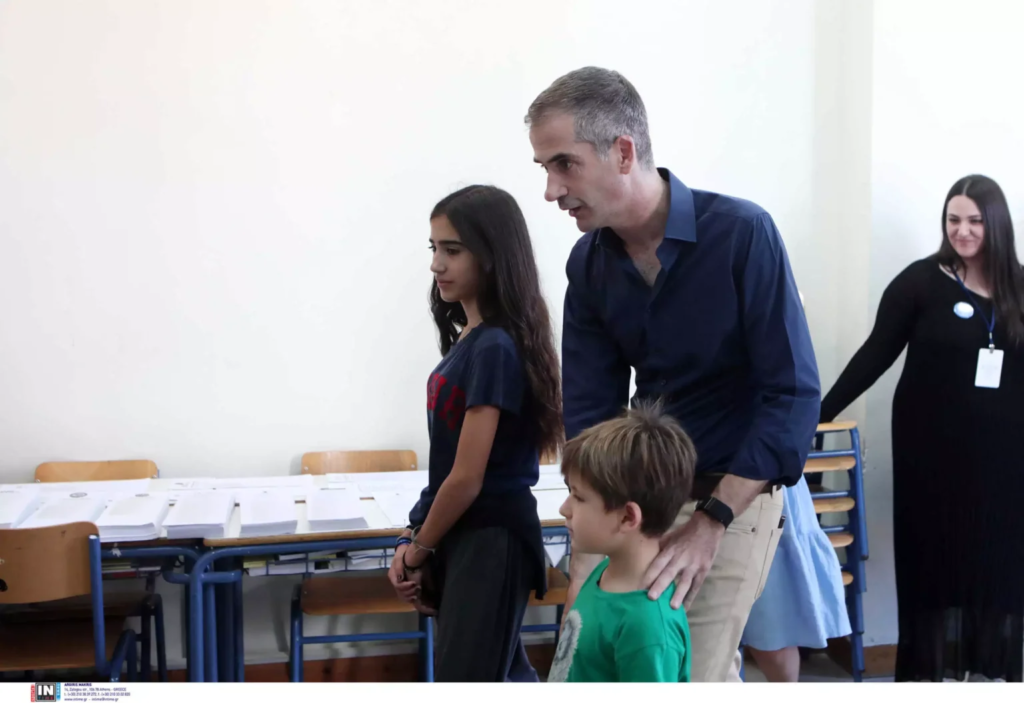 Ο Κώστας Μπακογιάννης άσκησε το εκλογικό του δικαίωμα, συνοδευόμενος από όλη την οικογένειά του, τα παιδιά του και τη σύζυγό του Σία Κοσιώνη.