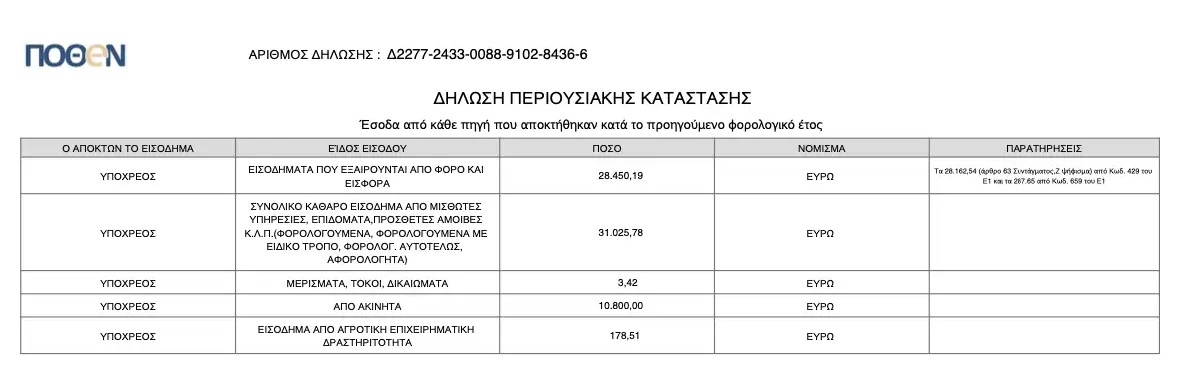 - 28.450,19 ευρώ από εισοδήματα αφορολόγητα