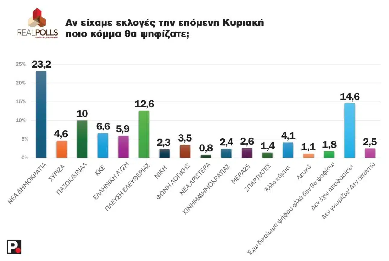 Δημοσκόπηση Real Polls: Πρώτη η ΝΔ, δεύτερη η Κωνσταντοπούλου, τρίτο το ΠΑΣΟΚ