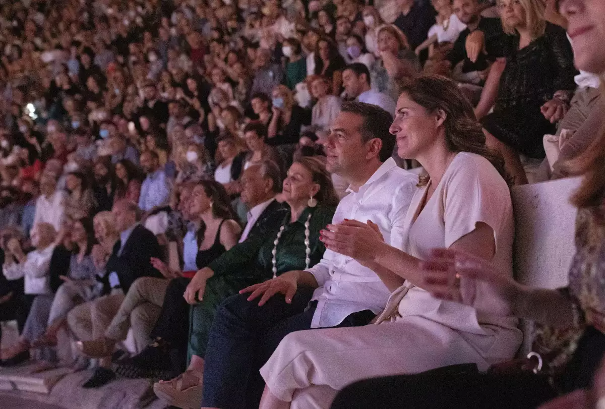 Ο πρόεδρος του ΣΥΡΙΖΑ και η σύζυγός του, οι οποίοι έχουν δημιουργήσει μία όμορφη οικογένεια, με την απόκτηση δύο παιδιών, μετά το τέλος της παράστασης βρέθηκαν και στα παρασκήνια για να συγχαρούν από κοντά τον Γιώργο Νταλάρα.