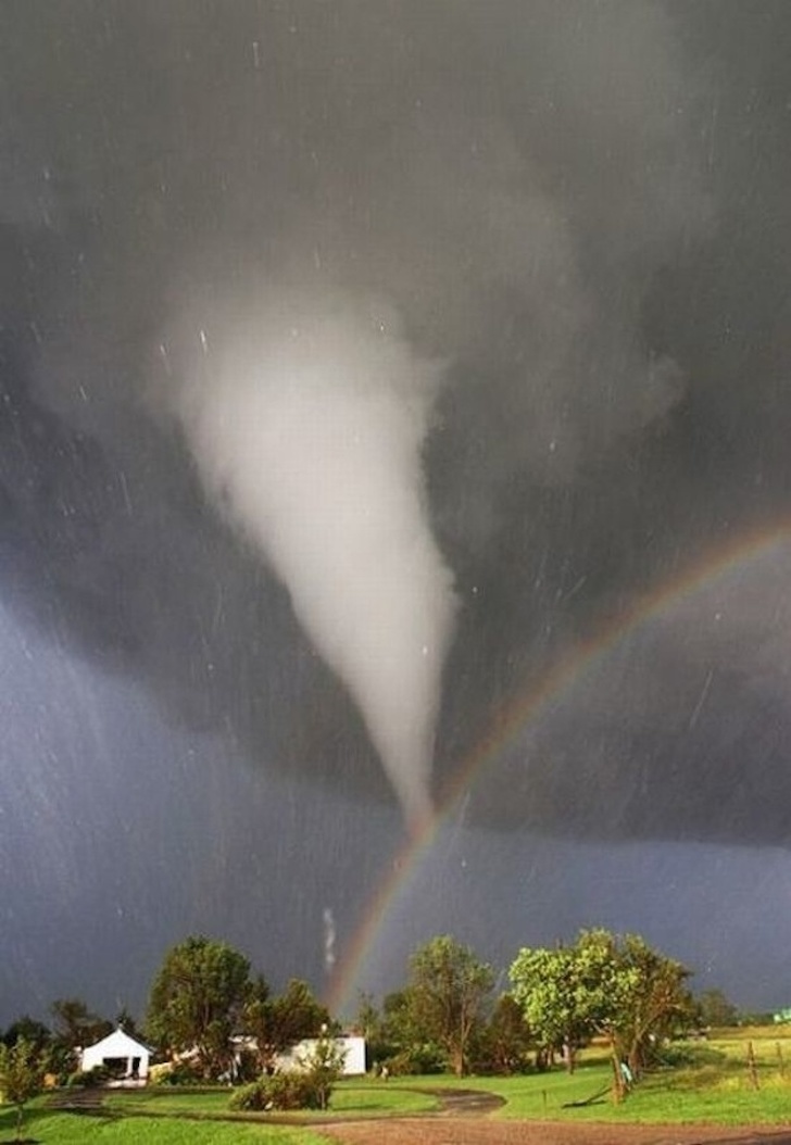 13. Ένας ανεμοστρόβιλος και ένα ουράνιο τόξο που εμφανίστηκαν ταυτόχρονα στο Κάνσας.