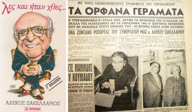 Αλέκος Σακελλάριος: Ο Έλληνας θεατρικός συγγραφέας, στιχουργός, δημοσιογράφος και σκηνοθέτης. Ήταν εξαιρετικά δημοφιλής και παραγωγικός. Υπήρξε από τους σημαντικότερους ανανεωτές της μεταπολεμικής νεοελληνικής κωμωδίας. Από τους σημαντικότερους στιχουργούς του ελαφρού ελληνικού τραγουδιού.