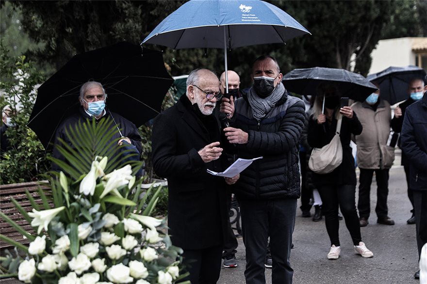 Τραγικές φιγούρες η κόρη και η εγγονή του, ενώ στην κηδεία βρέθηκαν, μεταξύ άλλων, ο Γιώργος Λιάνης, που εκφώνησε και τον επικήδειο, όπως επίσης ο Γιώργος και η Άννα Νταλάρα.