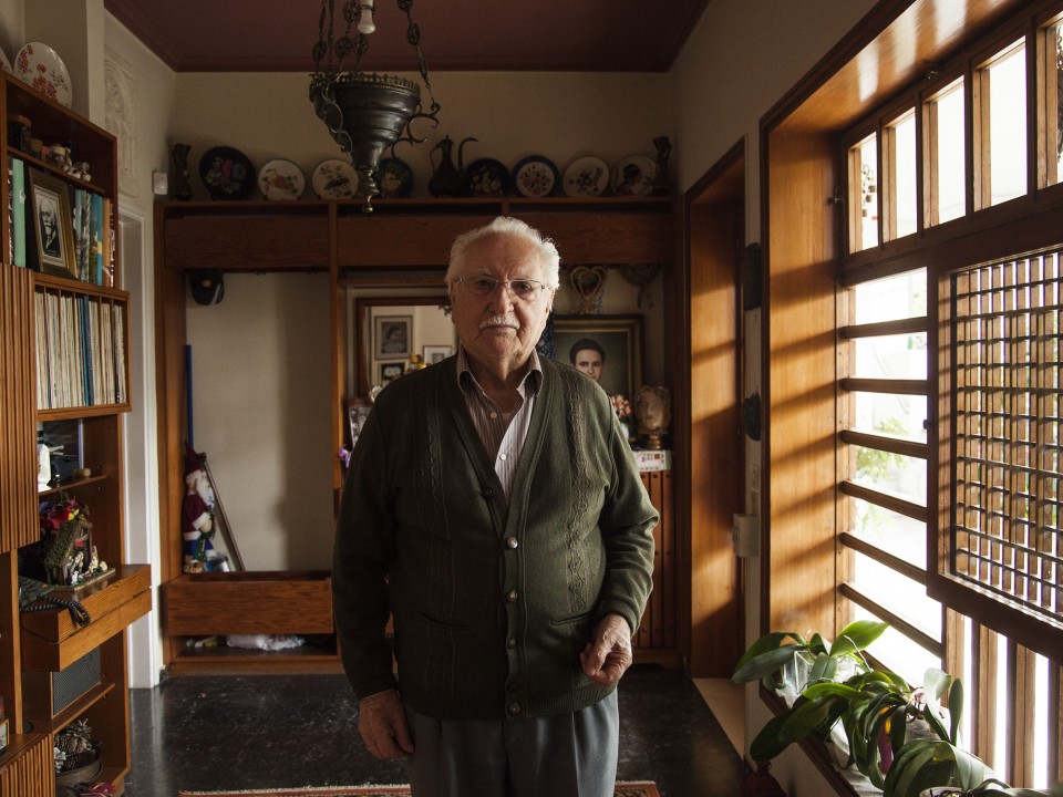 “Είμαι 56 χρόνια παντρεμένος. Από έρωτα παντρευτήκαμε, ευτυχώς δεν έμπλεξα με προξενιά, παρόλο που τότε έτσι γίνονταν οι γάμοι. Γνωριστήκαμε στο Σισμανόγλειο. Ήτανε νοσηλεύτρια η κυρά Φωτεινή κι εγώ στο λογιστήριο. Εγώ μουρμούριζα, δημιουργούσα με το μυαλό μου μουσικές και στο σπίτι και στο δρόμο, και η Φωτεινή μου έλεγε «ωχ, με ζάλισες πάλι!» ‘Ημουνα τυχερός που έμεινα 39 χρόνια στο Σισμανόγλειο -πέντε λεπτά από το σπίτι μου- από το οποίο και συνταξιοδοτήθηκα. Στο πόστο που ήμουνα κρατούσα τους λογαριασμούς των ταμείων. Πήγαινα στο γραφείο και Σαββατοκύριακα και απογεύματα και αργίες ετοίμαζα στις 20 του μηνός τη δουλειά που έπρεπε να είναι έτοιμη στις 30 του μηνός. Κι έλεγα στο διευθυντή «είμαι έτοιμος, μπορώ να πάω σε ένα ταξίδι στο εξωτερικό για μια βδομάδα;». «Να πας, αφού είναι έτοιμη η δουλειά», μου απαντούσε. Ευτυχώς, είχα καλούς συνεργάτες”.