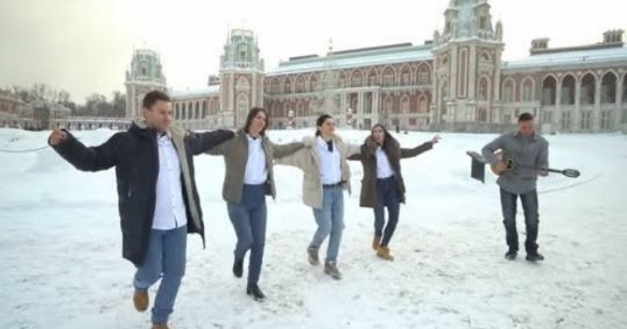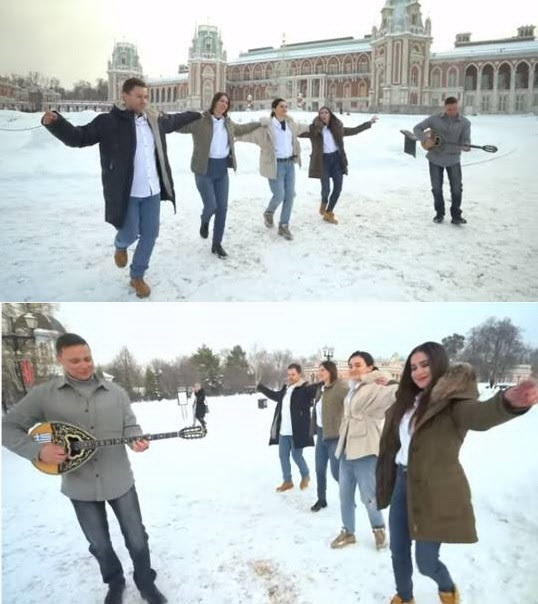 Ο βαρύς φετινός χειμώνας στη Μόσχα μοιάζει να «υποχωρεί» για λίγο, όταν ο Δημήτρης Κατσιούρας πιάνει στα χέρια το μπουζούκι του και με φόντο το Παλάτι Τσαρίτσιν, αρχίζει να παίζει ρεμπέτικα και λαϊκά ελληνικά τραγούδια, με τους πιο τολμηρούς ν’ αψηφούν το χιόνι που πέφτει γύρω τους και να πιάνουν τον …χορό.