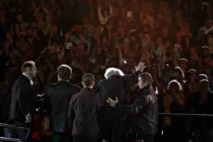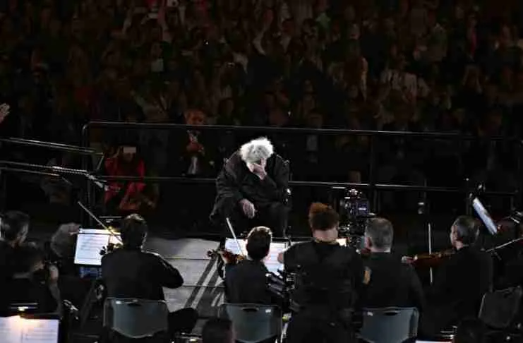 Ο συνθέτης έφτασε συγκινημένος σε καροτσάκι και πήρε θέση για τη συναυλία προς τιμή του.