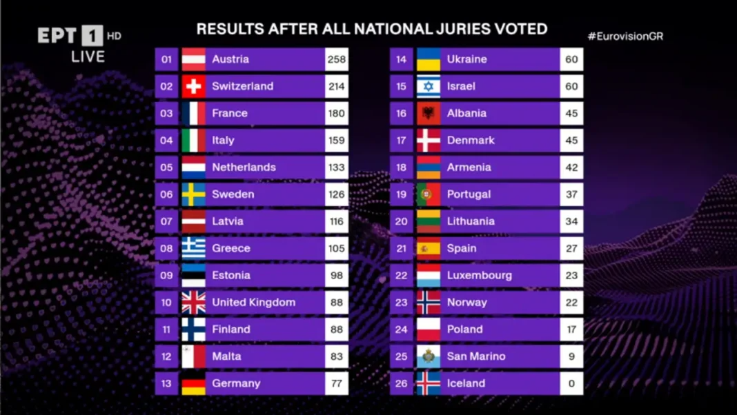 Νικήτρια η Αυστρία, στην 6η θέση η Ελλάδα με την Klavdia