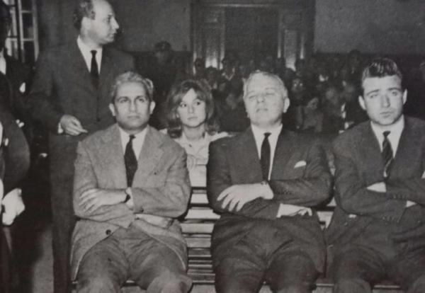 Η εταιρεία παραγωγής την κατηγορεί για αθέτηση των όρων συμβολαίου και μηνύει την ίδια και τους υπεύθυνους των εφημερίδων. Η μήνυση αφορά συκοφαντική δυσφήμιση και η υπόθεση καταλήγει στα δικαστήρια. Στην σπάνια αυτή φωτογραφία η Αλίκη στο «εδώλιο» των κατηγορουμένων, με τον «θεατρικό της μέντορα» στο πλευρό της και σπουδαίο Μάριο Πλωριτη (όρθιος αριστερά). Και τους συγκατηγορούμενους, Κ. Νιτσο (Αρχισυντακτης των «Νέων»), Π. Κοκκα (Δ/ντης «Ελευθεροτυπιας») και Κ.Αθανασοπουλο (Δ/ντης «Οθόνης»).