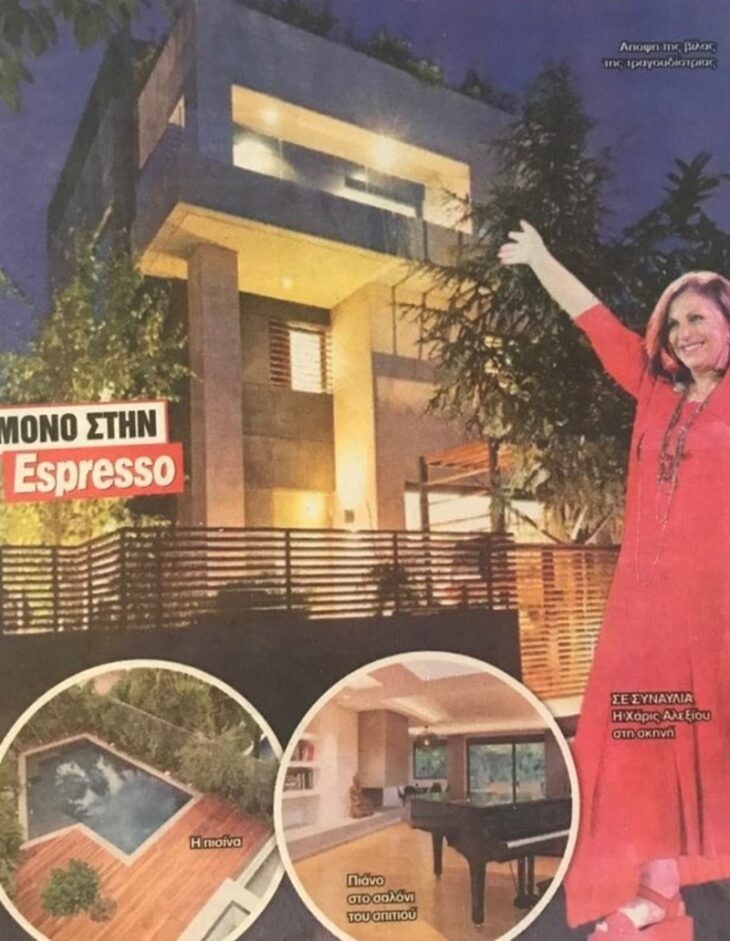 Η Χάρις Αλεξίου, η οποία δεν αγαπά καθόλου την επίδειξη, αγόρασε πριν από μερικά χρόνια το συγκεκριμένο σπίτι, όπως αναφέρει η Espresso, για επένδυση. Η ίδια δεν έμεινε ποτέ εκεί και κατοικεί σε ένα απλό και άνετο διαμέρισμα στη Φιλοθέη, που νοικιάζει στην περιοχή του Tennis Club.