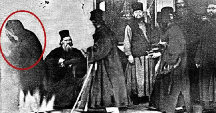 Έτσι, όταν όλοι πλέον είχαν μαζευτεί, ο Γαβριήλ ξεκίνησε να τραβά φωτογραφίες. Κάποια στιγμή, του φάνηκε πως ανάμεσα στους πατέρες κυκλοφορούσε μία μαυροφορεμένη γυναίκα. Απορημένος, έφερε τη μηχανή κοντά του και πάτησε ένα ακόμα «κλικ». Όταν η φωτογραφία εμφανίστηκε αργότερα, το θέαμα τον σόκαρε. Πράγματι, στην αριστερή γωνία του κάδρου διακρινόταν θολά μία γυναικεία φιγούρα.