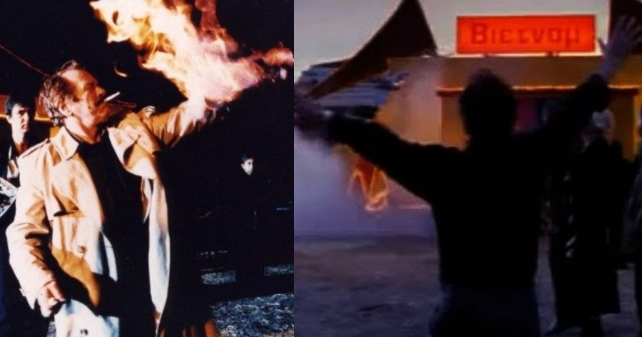 Ο Γιώργος Αρμένης, έριξε οινόπνευμα στα ρούχα του και στη συνέχεια λούστηκε με το ουίσκι και έβαλε φωτιά. Άρχισε να καίγεται κανονικά μέχρι που ο Παντελής Βούλγαρης είπε cut, οπότε και σταμάτησε, έπεσε κάτω και τον πήραν τα κλάματα.