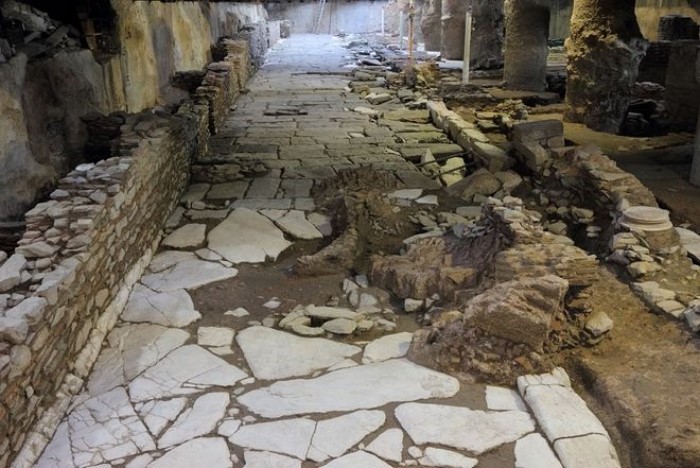 Αποκαλύφθηκε η κεντρική χαλικόστρωτη οδός των βυζαντινών χρόνων, στο ίχνος του παλαιότερου decumanus maximus με μέσο πλάτος 5,5 έως 6,5μ.