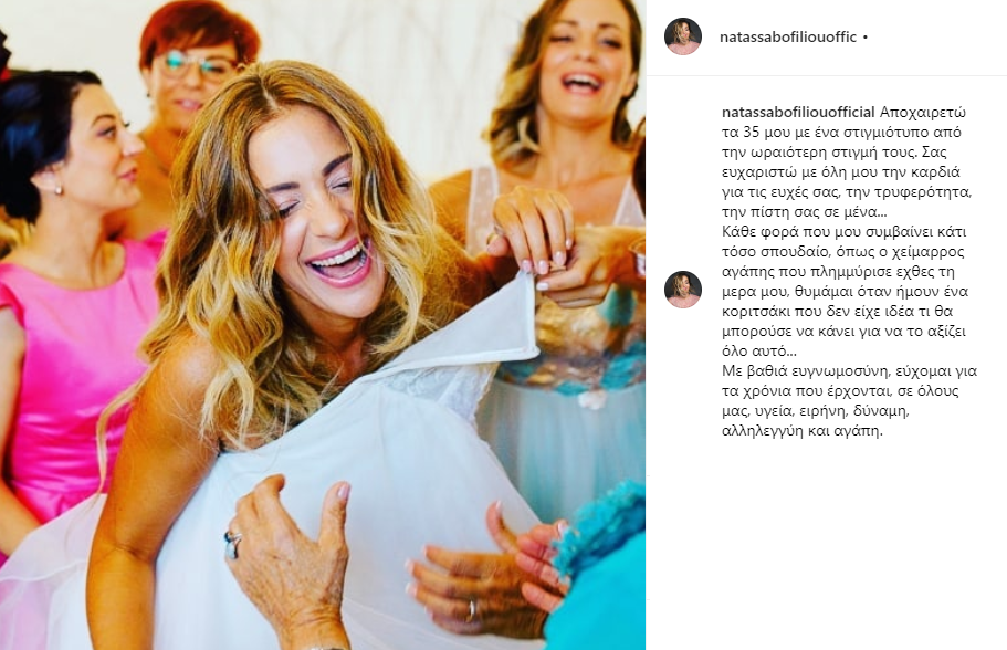 «Σας ευχαριστώ που με βοηθήσατε να βρω τον άνθρωπο που αγαπάω», είχε πει η Νατάσσα στον κόσμο, ενώ ο Χρήστος, αφού υπονόησε ότι στρεσάρεται με τους δημόσιους λόγους, είχε πει από την πλευρά του: «Η Νατάσα με κάνει να είμαι η καλύτερη εκδοχή του εαυτού μου. Με έκανε να συμφιλιωθώ με τον εαυτό μου» και είχε συμπληρώσει ότι ο γάμος είναι μια μάχη στην οποία τη θέλει δίπλα του.