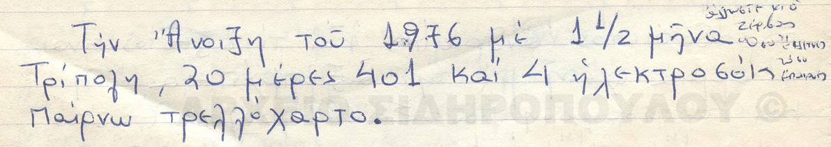 Επόμενος σταθμός οι περιπέτειές του στο στράτευμα, με τον Σιδηρόπουλο να μην ολοκληρώνει τη θητεία του: «Την άνοιξη του 1976», θα πει, «με 1,5 μήνα Τρίπολη, 20 μέρες 401 και 4 ηλεκτροσόκ παίρνω το τρελόχαρτο»…