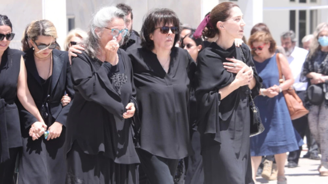 Μια αγκαλιά οι κόρες της Αλεξία και Αριέττα και Αμαλία Μαρία στην κηδεία, αποτέλεσαν στήριγμα η μία για την άλλη.
