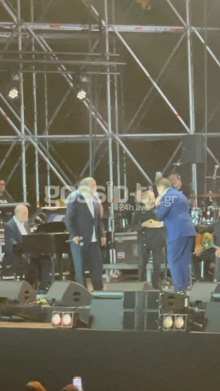 Ο σπουδαίος συνθέτης, φίλος και συνοδοιπόρος του «Σερ» του ελληνικού τραγουδιού, ανέβηκε στη σκηνή και με την παρουσία του «σείστηκε» το στάδιο από το χειροκρότημα του κοινού.