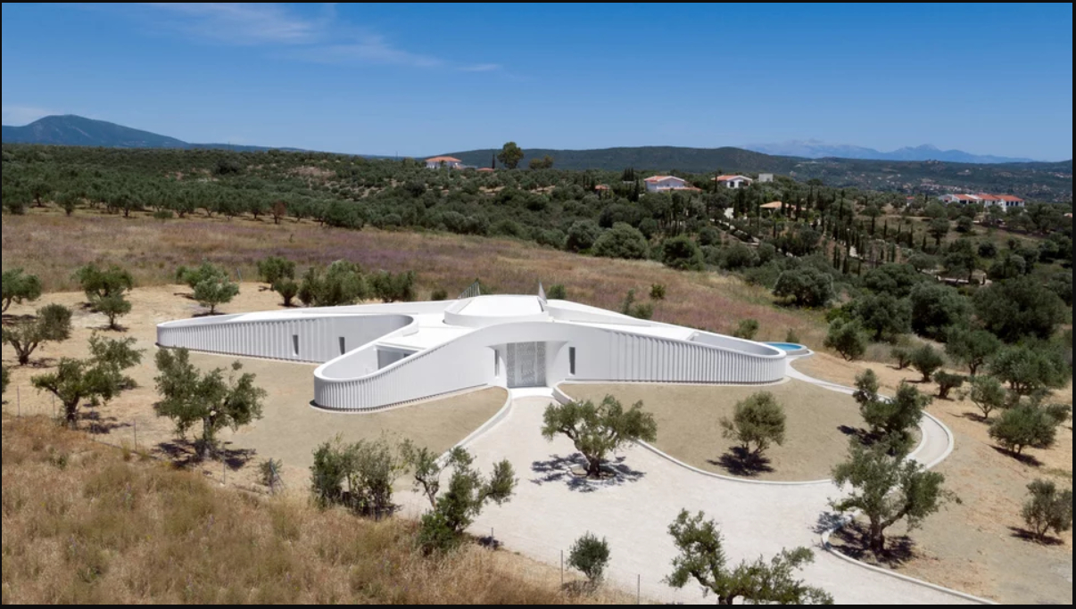 Πρόκειται για άλλο ένα εντυπωσιακό δείγμα σύγχρονης αρχιτεκτονικής και μάλιστα εντελώς στο «πουθενά» της ελληνικής υπαίθρου, σε μια πολύ ήσυχη αλλά πανέμορφη γωνιά στη Μεθώνη, κυριολεκτικά μέσα στους ελαιώνες.