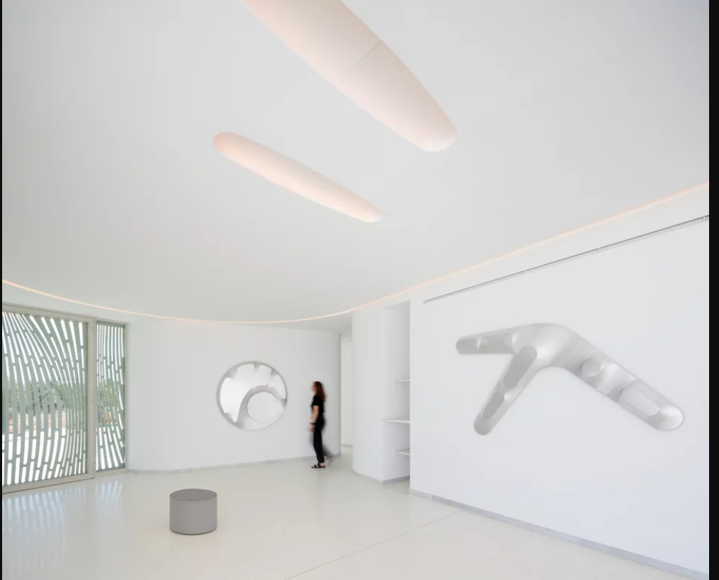 Εσωτερικά, κάθε δωμάτιο βλέπει προς μια εσωτερική βεράντα και αυλή. Ο τοίχος του δωμάτιου εκτείνεται προς τα έξω και πλαισιώνει μια λεμονιά. Η απουσία γωνιών και η συνέχεια του τοίχου προσφέρουν σημαντική διεύρυνση των χώρων. Οι καμπύλες των τοίχων καδράρουν τις εναλλαγές του φωτός και του χρώματος του ουρανού επιτείνοντας την παρουσία στον εσωτερικό χώρο.