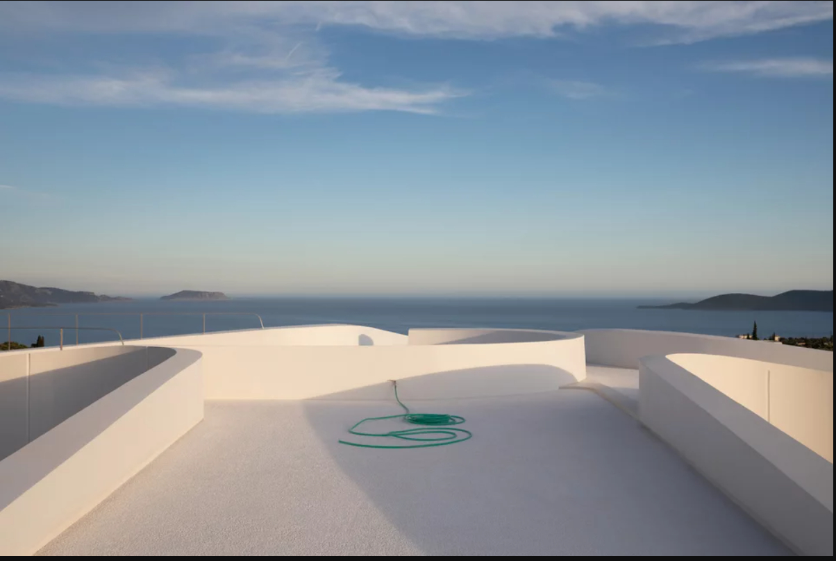 «Η βίλλα ΚΗΙ συνδυάζει δύο αντίρροπα στοιχεία τα οποία αλληλοσυμπληρώνονται: οι αυλές προσφέρουν τη δυνατότητα στοχαστικής απομόνωσης, ενώ η δυτική πτέρυγα και η οροφή προσφέρουν άπλετη, πανοραμική θέα στη θάλασσα», αναφέρει o Θόδωρος Σαραντόγλου – Λάλης.
