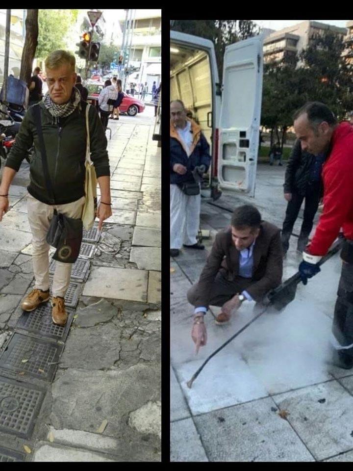 Ο Τάκης Παπαματθαίου αγανακτισμένος που ο δήμαρχος τον αγνοεί αν και ο ίδιος έχει επανειλημμένα θήξει το θέμα, απειλεί ότι θα τυπώσει φυλλάδια διαμαρτυρίας με φωτογραφίες από τις σπασμένες πλάκες και θα πάει έξω από το δημαρχείο να τα μοιράσει.