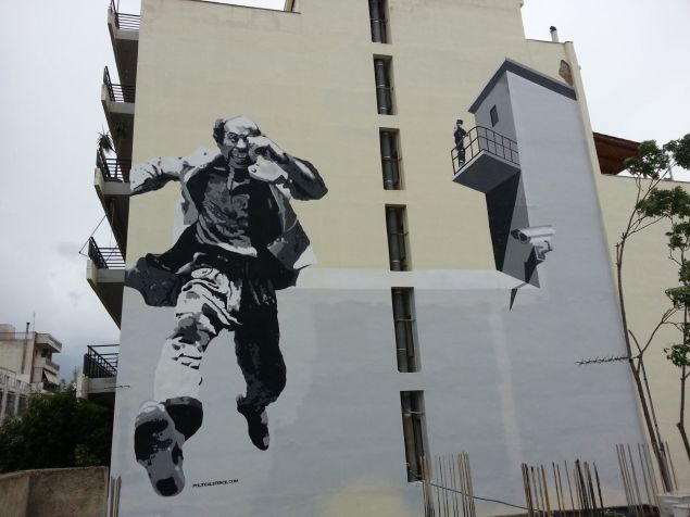 Φτιάχνοντας ένα τεράστιο γκράφιτι σε τοίχο πολυκατοικίας που απεικονίζει τον Θανάση Βέγγο να τρέχει, όπως έκανε πάντα στα εργα του, οι politicalstencil έκανα την Λεωφόρο Γούναρη στην Πάτρα, πιο όμορφη από ποτέ.