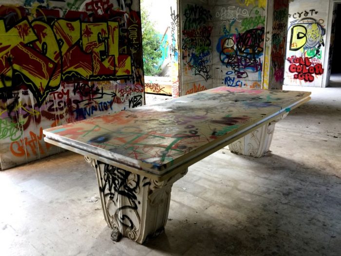 Το μόνο που δεν έχουν καταφέρει να απομακρύνουν, είναι ένα τεράστιο μαρμάρινο τραπέζι στο κέντρο της κατοικίας, το οποίο, όμως, έχει υποστεί μεγάλες φθορές. Όχι φυσικά από το χρόνο. Αλλά από τον άνθρωπο…