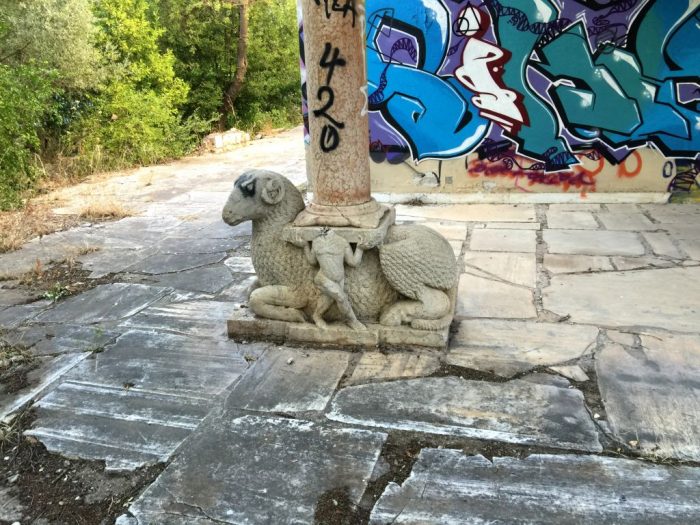 Και το χειρότερο; Κανείς μέχρι σήμερα δεν έχει σεβαστεί το χώρο που θα μπορούσε να αποτελεί πόλο έλξης για χιλιάδες τουρίστες ετησίως. Στη βίλα μπαινοβγαίνει ανενόχλητος όποιος θέλει, κλέβει ό,τι έχει απομείνει, καταστρέφει τα ελάχιστα γλυπτά και μάρμαρα που έχουν επιζήσει στους εσωτερικούς και εξωτερικούς χώρους και φροντίζει να «στολίζει» τους τοίχους με μια άλλου είδους «τέχνη» που σίγουρα η αισθητική του Ιόλα θα απέρριπτε.