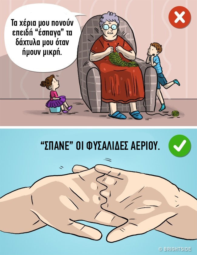 Αυτή η παρανόηση είναι πολύ δημοφιλής, αλλά δεν υπάρχει λόγος να ανησυχείτε. Δεν έχει γίνει καμία σύνδεση μεταξύ της αρθρίτιδας και του “σπασίμου” των δαχτύλων. Δεν σπάνε τα οστά, αλλά οι φυσαλίδες του αέρα.