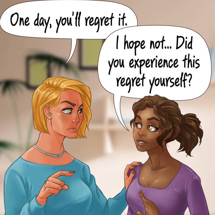 Σε ορισμένες περιπτώσεις, οι άνθρωποι εισβάλλουν στη ζωή άλλων ανθρώπων επειδή είναι δυσαρεστημένοι με τη δική τους. Είναι πιθανό ότι η συμμετοχή στη ζωή σας τους βοηθά να αισθάνονται καλύτερα για τη δική τους. Επομένως, θα ήταν χρήσιμο να τους δώσετε μια ευκαιρία να μιλήσουν για αυτό. Αν ρωτήσουν “Γιατί χωρίσες έναν τόσο καλό άντρα;” θα μπορούσατε να απαντήσετε ευγενικά κάπως έτσι “Είχατε μια εμπειρία διαζυγίου που μετανιώσατε;”