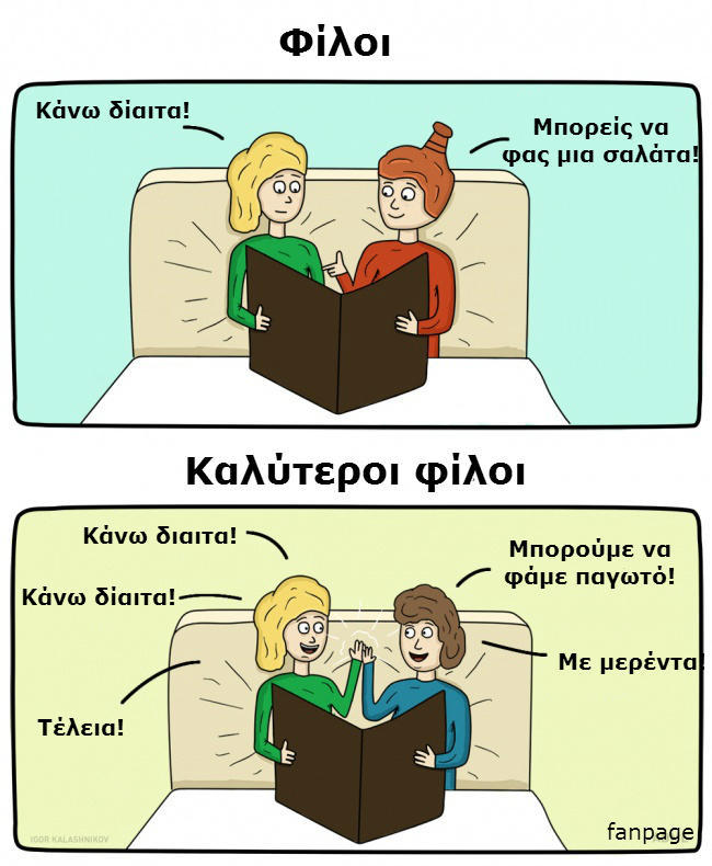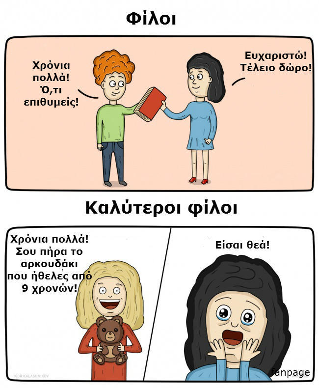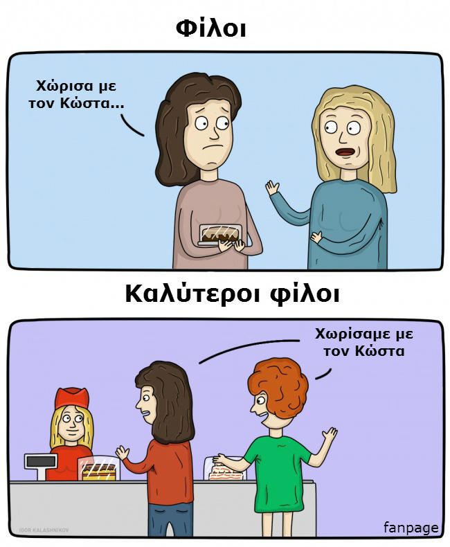 Τα παρακάτω σκίτσα απεικονίζουν 11 διαφορετικές περιστάσεις, όπου φαίνεται η διαφορά του απλού και του καλύτερου φίλου!