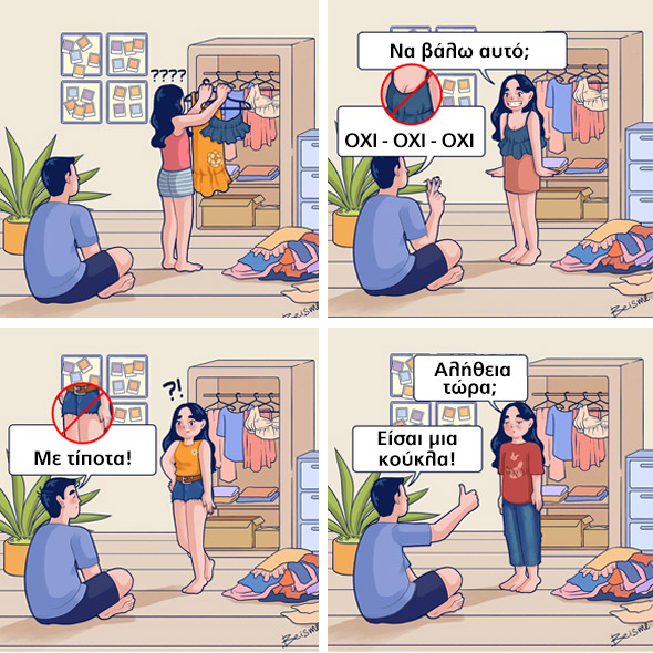 Σε περίπτωση που αισθάνεστε κάπως έτσι για το σύντροφό σας, δεν έχετε παρά να νιώθετε ιδιαίτερα τυχεροί. Ευλογημένοι θα μπορούσαν να πουν κάποιοι άλλοι. Από εκεί και πέρα, τα ερωτευμένα ζευγάρια ταυτίζονται, με τα σκίτσα που βρίσκονται παρακάτω.