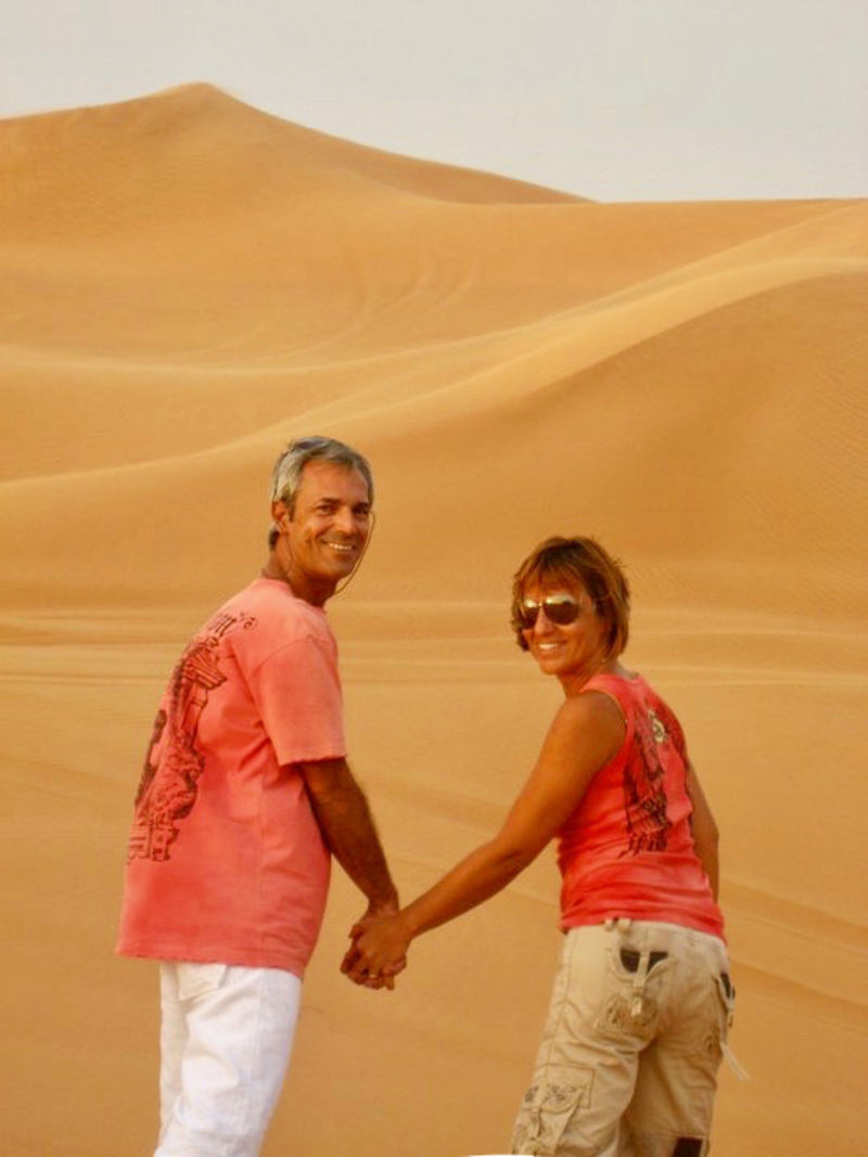 Είμαστε ένα ζευγάρι που από την πρώτη μέρα είχε σκοπό να περνάει καλά χωρίς συμβιβασμούς. Χωρίς πλάνα και προϋποθέσεις. Από την αρχή αγαπούσαμε την δουλειά και τα ταξίδια. Η μηχανή ήταν η ελευθερία μας, σακίδιο κράνη και φύγαμε.