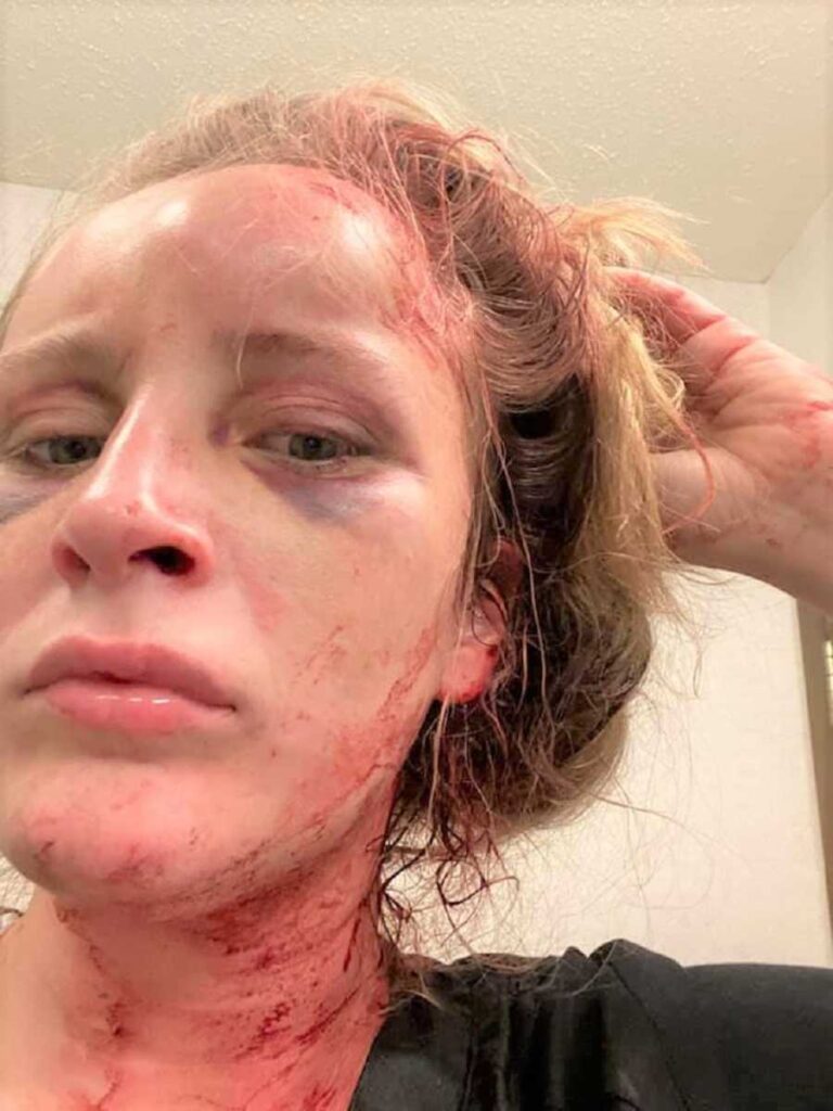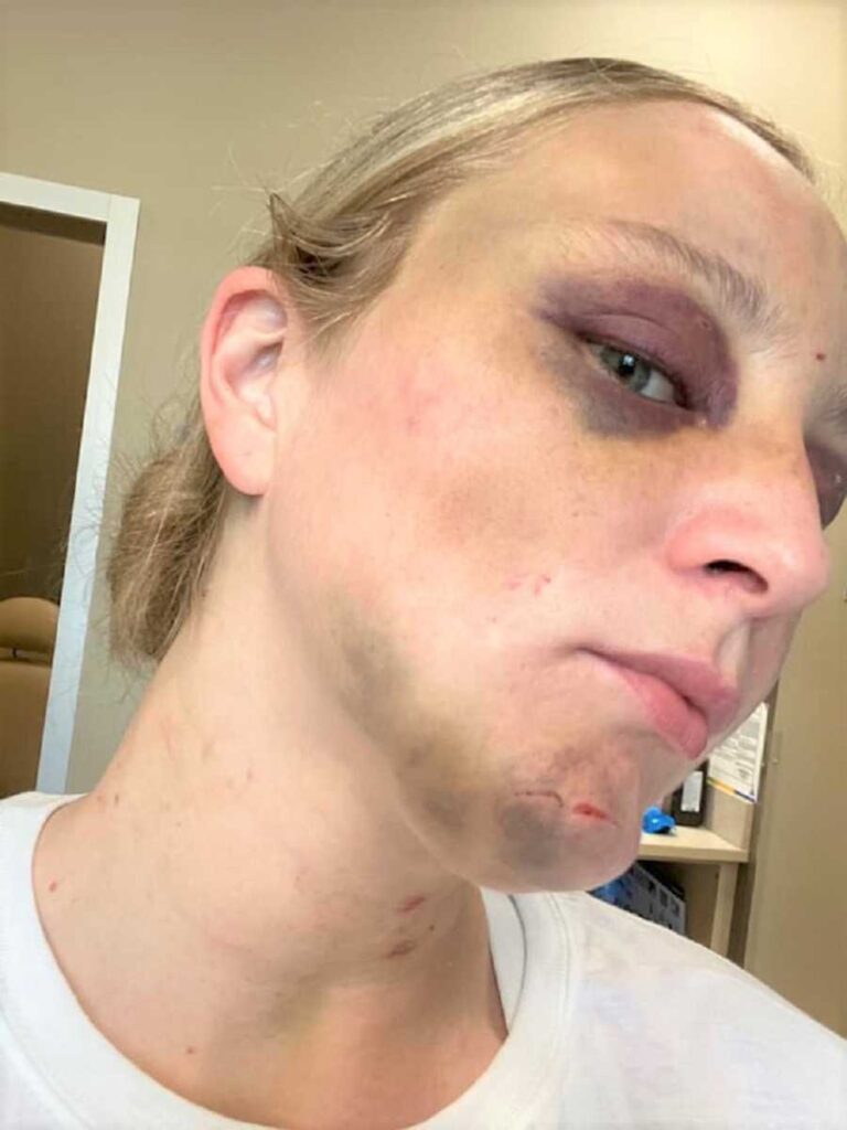 Το προηγούμενο συμβάν, πριν από αυτό που ανέφερα παραπάνω, είχε καταστρέψει τα γενέθλια της κόρης μου. Με είχε πετάξει από το σπίτι, με είχε σαπίσει στο ξύλο σε ένα γκαράζ και όταν ξύπνησα είδα ότι έψαχνε βενζίνη για να με λούσει και να μου βάλει φωτιά. Με πήγαινε από το ένα σπίτι στο άλλο, σε φίλους και συγγενείς και στο τέλος της ημέρας με έπιασε κρίση πανικού. Τελικά κάποιος κάλεσε ασθενοφόρο και τη μέρα των γενεθλίων της κόρης μου βρέθηκα στο νοσοκομείο, με σπασμένα πλευρά, σπασμένη μύτη… Τότε είχε προσπαθήσει να πετάξει το αυτοκίνητό μου από έναν γκρεμό. Στο παρελθόν μου είχε κουρέψει τα μαλλιά μου, είχε μαυρίσει τα μάτια μου, είχε ανοίξει το πρόσωπό μου με τα χτυπήματα, με χτυπούσε ενώ είχα το παιδί μου στην αγκαλιά μου και ενώ το άλλο μου παιδί κοιτούσε, ενώ με έχει χτυπήσει και μπροστά στα δικά του παιδιά.