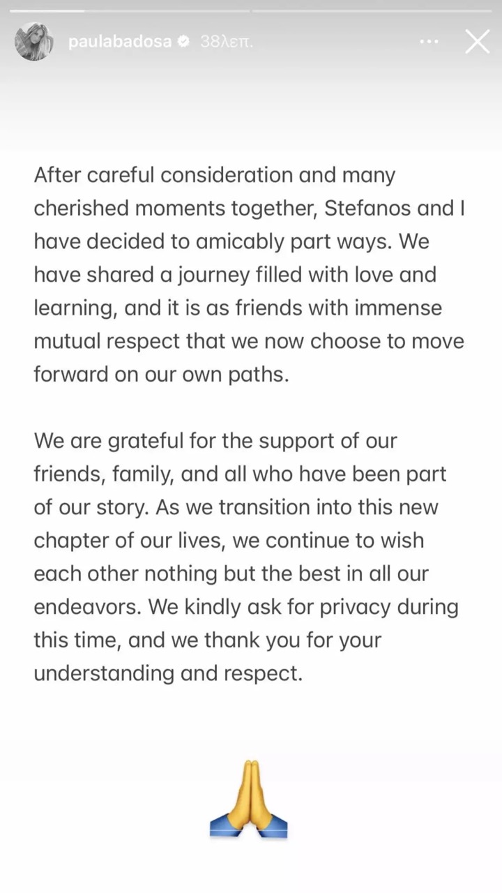 Η Ισπανίδα τενίστρια Πάουλα Μπαντόσα προχώρησε σε μια ανάρτηση στον προσωπικό της λογαριασμό στο Instagram για να ανακοινώσει το τέλος της σχέσης τους. Με λόγια γεμάτα σεβασμό και αγάπη, περιέγραψε την κοινή πορεία τους ως μια περίοδο πλούσια σε συναισθήματα και μοιρασμένες εμπειρίες.