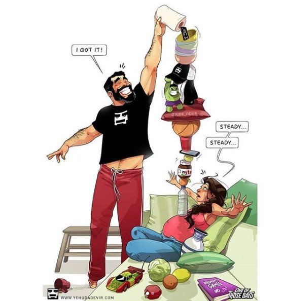 Ο υπέροχος αυτός καλλιτέχνης που έφτιαξε τα χιουμοριστικά σκίτσα εμπνευσμένος από την εγκυμοσύνη της συζύγου του, ονομάζεται Yehuda Devir. Και προφανώς φαίνεται ότι δεν τα βρίσκει όλα και τόσο ρόδινα στη συμβίωση με την έγκυο γυναίκα του Maya. Αυτό φυσικά βγαίνει και στα τελευταία του σκίτσα.