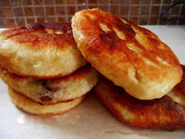 – Στην αρχή ζυμώνετε μαζί, τα υλικά. – Στη συνέχεια βάλτε τη ζύμη σε ένα λαδωμένο μπολ. – Λαδώστε καλά τη ζύμη από πάνω. – Σκεπάστε τη ζύμη. – Αφήστε τη ζύμη να φουσκώσει. – Κόψτε μπαλάκια ζύμης, με λαδωμένα χέρια. – Γεμίστε τα μπαλάκια της ζύμης, με τριμμένο τυρί. – Εναλλακτικά, μπορείτε να γεμίσετε τα μπαλάκια ζύμης, με ελιές. – Κλείστε τα μπαλάκια ζύμης σε πουγκί. – Πατήστε το πουγκί. Σκοπός είναι να πλατύνουν τα μπαλάκια της ζύμης. – Τηγανίστε τα μπαλάκια ζύμης, με τη γέμισή τους (σ.σ. ελιές, τριμμένο τυρί). Τα μπαλάκια ζύμης θα πρέπει να τα τηγανίσετε έως ότου γίνουν αφράτα. Το σημαντικότερο είναι πως δεν ρουφάνε πολύ λάδι. – Αφαιρέστε τα μπαλάκια ζύμης από το τηγάνι και αφήστε τα σε ένα πιάτο με χαρτοπετσέτες για να ρουφηχτεί το υπόλοιπο λάδι. Επίσης, τα μπαλάκια ζύμης θα μπορέσουν ταυτόχρονα να κρυώσουν. – Αυτό ήταν! Βάλτε τα μπαλάκια ζύμης σε πιάτα και σερβίρετε τα αγαπημένα σας πρόσωπα.