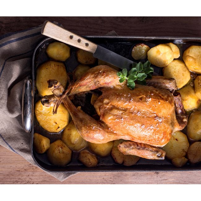 Δέσιμο κοτόπουλου στο φούρνο: Έχει να κάνει με το κατάλληλο σχήμα και τη συγκράτηση των ζουμιών στο ψήσιμο.