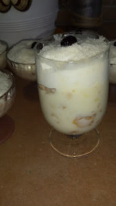 - Μετά βάζουμε μέσα 2 πακέτα Παπαδοπούλου σπασμένα και τα στρώνουμε σε ταψί ή ποτήρι.