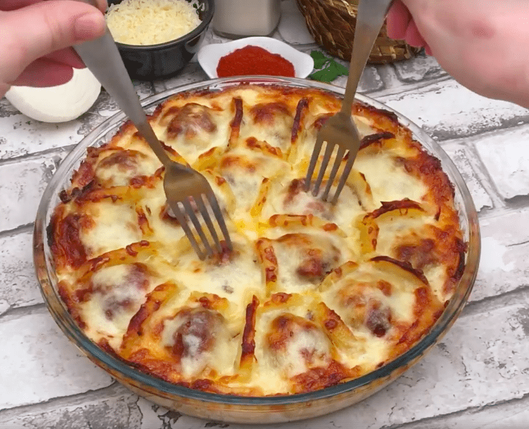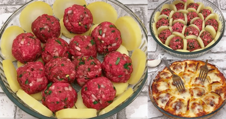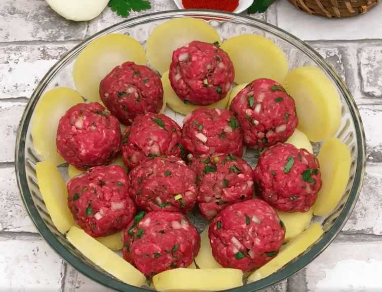 5. Βάλτε μέσα τους κεφτέδες, έναν για κάθε μία πατάτα.