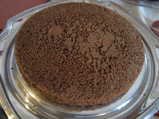 – Βρέχουμε το παντεσπάνι, με μισό φλιτζάνι αραιωμένο σιρόπι και με λίγο νεράκι μία με δύο κουταλιές της σούπας από γλυκό του κουταλιού.