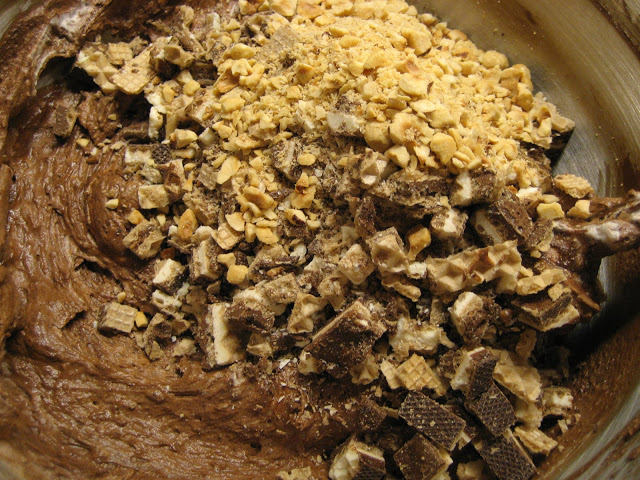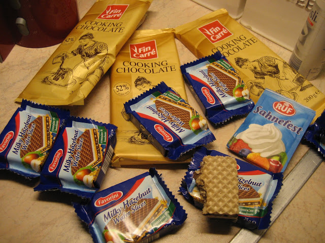– Προσθέτουμε μερέντα, λιωμένη κουβερτούρα, τρεις με τέσσερις κουταλιές φουντούκια και τις γκοφρέτες.