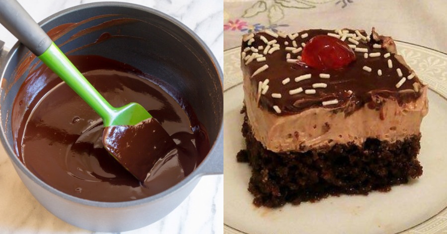 - Την απλώνουμε πάνω από το γλυκό και βάζουμε στο ψυγείο για 1 ώρα πριν σερβίρουμε.