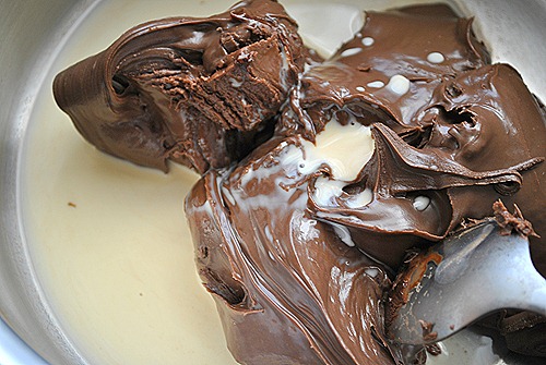 Μαλακωνουμε με γάλα σε μπεν μαρί, την πραλίνα φουντουκιού.