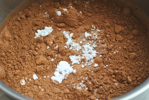 Βράζουμε το γάλα, τη ζάχαρη και το κακάο σε χαμηλή φωτιά. Ανακατεύουμε μέχρι να γίνει και μετά αφήνουμε να κρυώσει, το μείγμα.